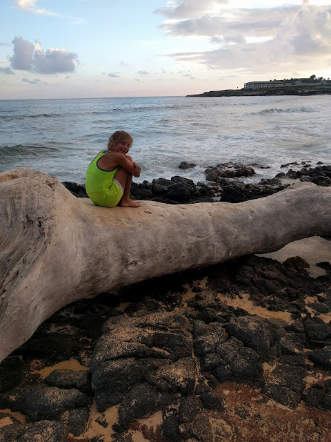 These are a little out of order...but it was great. The kids (and I) had their first taste of Hawaiian sand, got to play in the water, and Mom and Dad were beside themselves because their dream of being in Kauai with their grandkids was finally coming true. Not bad for a first night ;)